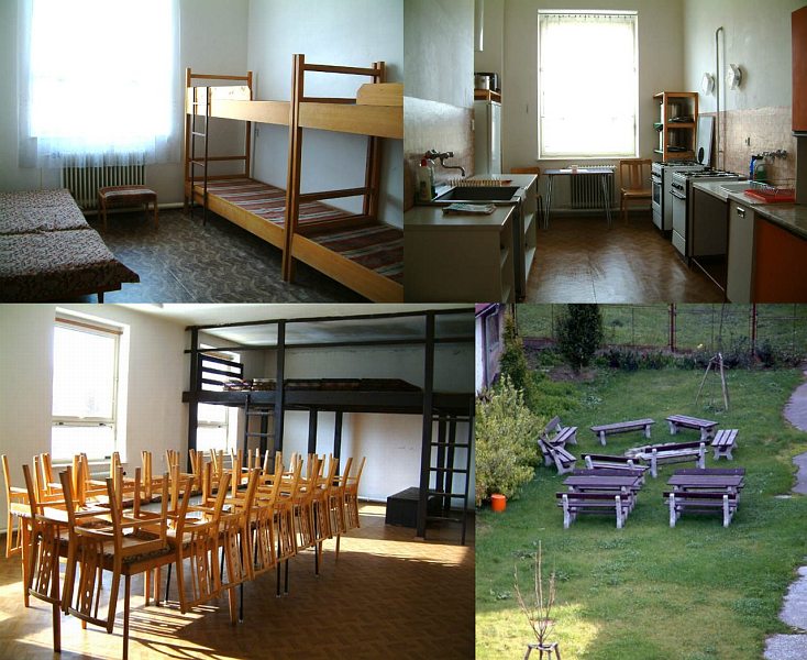 Cena: Celoročně: ve vlastním spacáku 150 Kč/os/noc, jen pro kolektivy vedené pedagogem. Pronájem kuchyně 200 Kč/hod. nebo 1.000 Kč/den. Pronájem tanečního sálu 300-400 Kč/hod nebo 1.500-2.000 Kč/den. Ceny jsou konečné a platí i při ubytování jen na 1 noc.