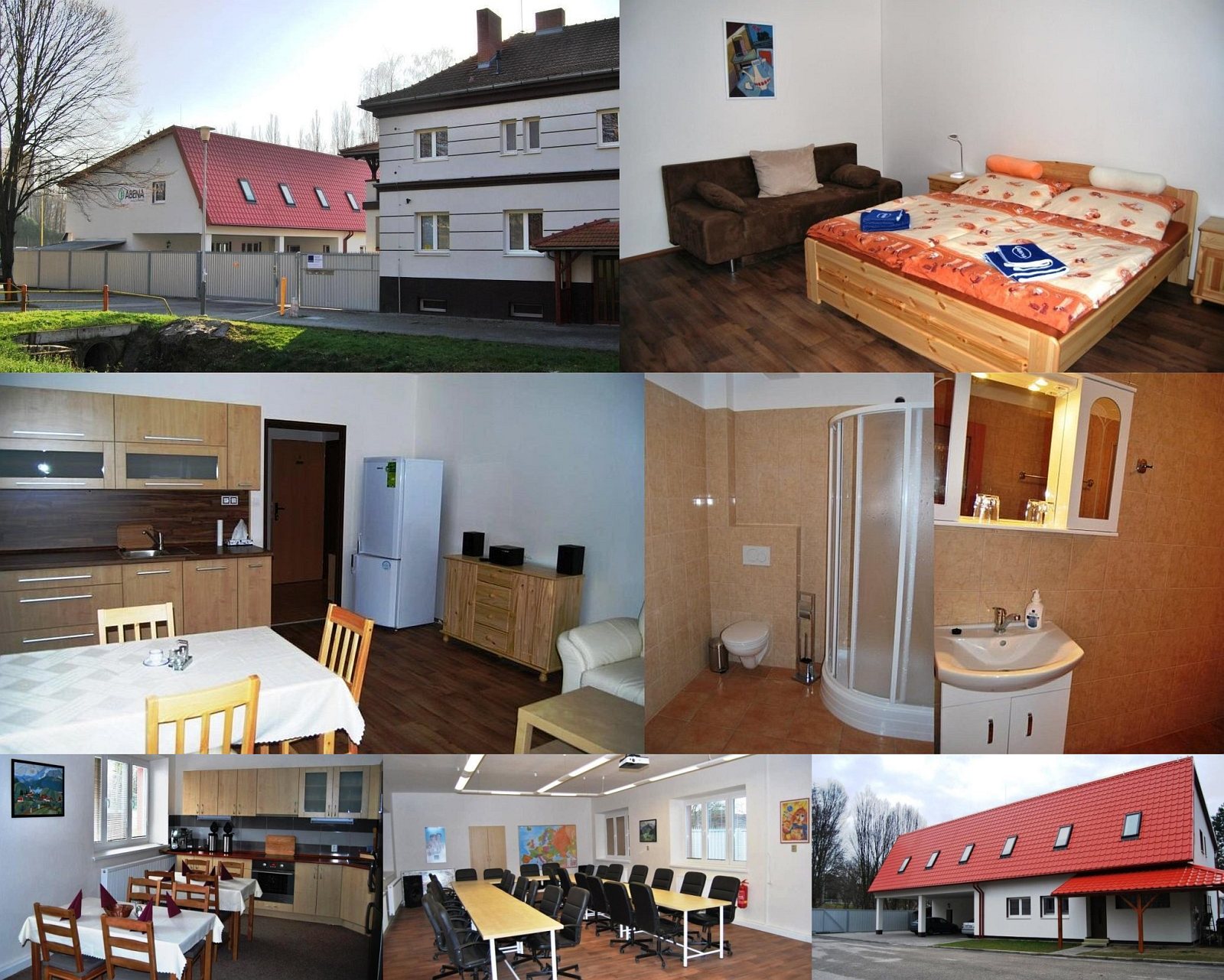 Ubytování: Školící středisko s komfortním ubytováním pro 16 osob v 6 pokojích (6x2 lůžka) a 2 apartmánech (1x2, 1x5 lůžek). Všechny pokoje mají vlastní soc. zařízení a bezplatné WiFi připojení, apartmány jsou navíc vybavené kuchyňským koutem. Společné předsálí s dalším sociálním zázemím a kuchyňkou. Parkování zdarma v uzavřeném a zabezpečeném objektu. Možnost pronájmu přednáškového sálu (kapacita 40 míst, PC s připojením na internet, dataprojektor, flipchart, ozvučení).