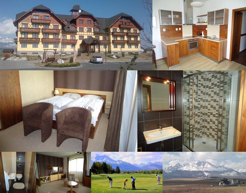 Ubytování: Apartmán s kapacitou 6 osob v apartmánovém domě. Apartmán má ložnici (dvoulůžko, palanda, TV+SAT, DVD přehrávač), obývací pokoj (rozkládací gauč, TV+SAT, DVD, pracovní kout, hračky), koupelnu (sprcha, fén), WC, vybavený kuchuňský kout (el. trouba, sklokeramická varná deska, lednice, myčka, mikrovlnka, varná konvice), jídelní kout (dětská židlička), předsíň (vysavač). V domě je recepce (provoz 24 hodin) s možností objednání snídaní. V komplexu je multifunkční hřiště (tenis, volejbal, futbal), dětské hřiště, dětský koutek, wellness centrum, posilovna, lobby bar, grilovací altánky s krbem. Možnost zapůjčení jízdních kol.