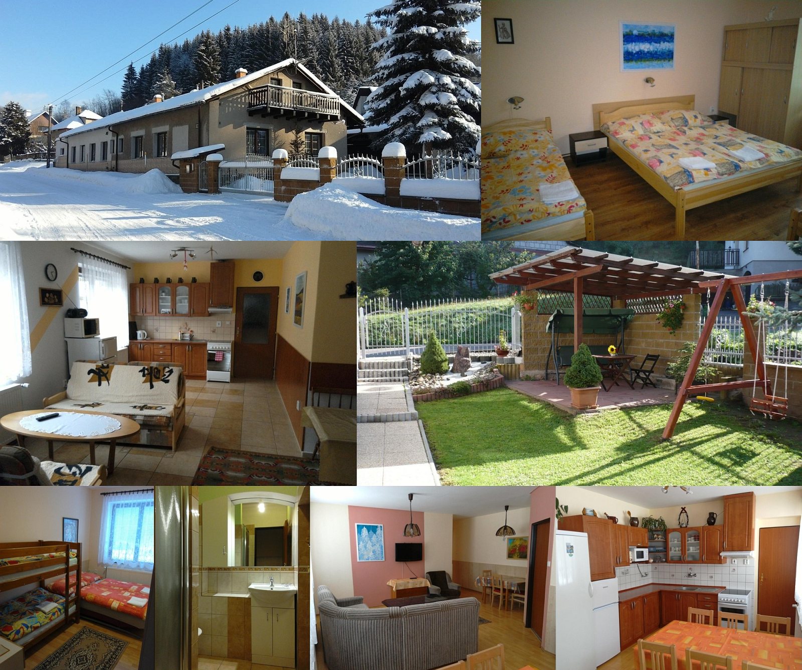 Ubytování: Tři apartmány s celkovou kapacitou 25 osob. APT 1 (50 m2, 5-lůžkový), APT 2 (75 m2, 3 ložnice, 15-lůžkový), APT 3 (40 m2, 4-lůžkový). Každý apartmán má vlastní soc. zařízení, kuchyňku (lednice, el. sporák, mikrovlnka, rychlovarná konvice, nadobí), obývací místnost s TV, internetovou přípojkou, wifi. Vytápění je zajištěno majitelem objektu. Parkování přímo u apartmánů (4 auta v oploceném prostoru, další auta na neoploceném pozemku). Zahrada s krytým posezením a dětským hřištěm.