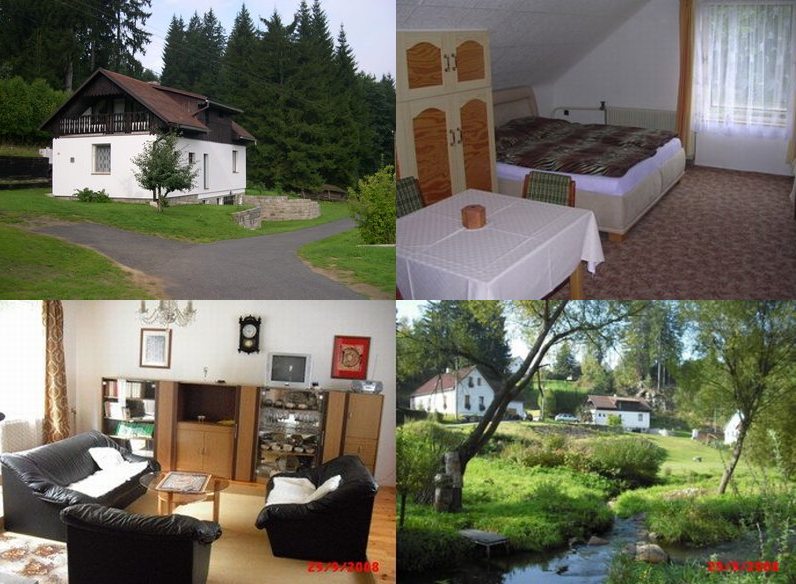 Ubytování: Chalupa pro 6 osob. V přízemí prostorný obývací pokoj s krbem, kuchyň + jídelna, koupelna se sprchou a WC. V patře 1. ložnice (manželské lůžko + 2 samostatné lůžka) a 2. ložnice (manželské lůžko + balkon). Vybavení chalupy: plynový sporák s el. troubou, lednice s mrazákem, varná konvice, vysavač, žehlička, barevná TV (+ satelit), CD rádio, přímotopy, el. bojler (80 litrů), venkovní ohniště, plastový zahradní nábytek. Parkování na pozemku chalupy, garáž v podzemí.