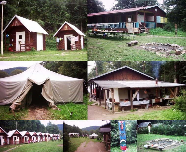 Ubytování: Chatový tábor s 18 chatkami, srubem a hlavní budovou (zateplený srub s elektřinou). Hlavní budova: kamna na dřevo, kuchyň, 1 velký pokoj, 3 menší pokojíčky, 2 kanceláře. Srub: 12 matrací + 6 míst pro vlastní karimatky. Chatky: elektřina, 3-4 lůžka. Dvě umývárny s bojlery, suché WC, polní kuchyně (nádobí), dílna. Nově postavená klubovna. Nutné vlastní spacáky. Volejbalové hřiště, fotbalový či basketbalový plácek, stolní tenis. Tábor je určen pouze pro rodiče s dětmi či akce mládeže do 26 let!