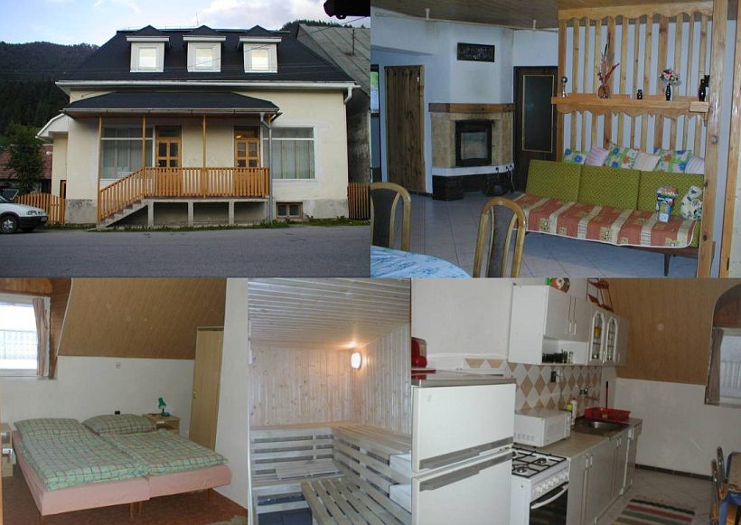 Ubytování: Privát s kapacitou 15 lůžek (pokoje 2x5, 1x3, 1x2 lůžka). Zdarma wi-fi připojení na Internet, satelitní příjem TV programů a mini-audio systém. Společené soc. zařízení (toaleta, koupelna, sprchový kout) a kuchyňka s mikrovlnkou. Společenská místnost s krbem. Podlahové topení. Ve dvoře je sauna (za príplatok) s altánkem.
