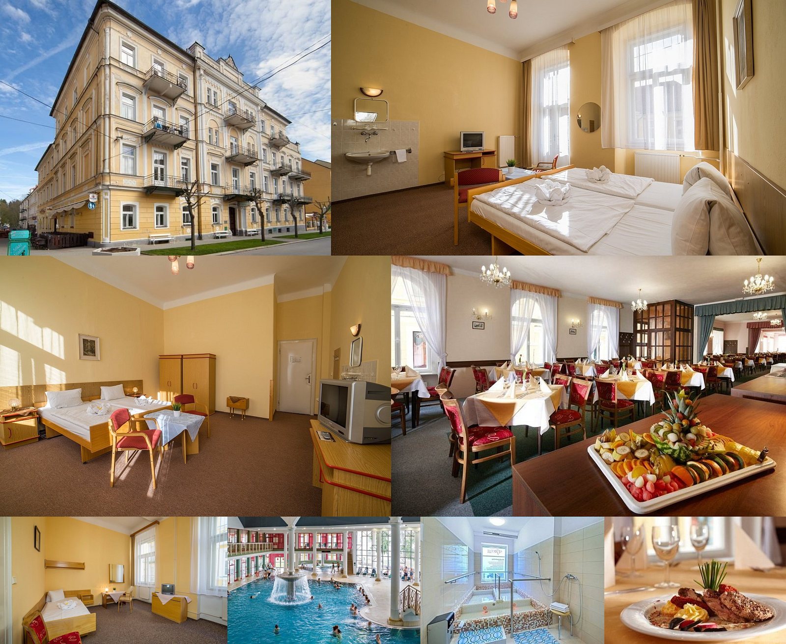 Ubytování: Lázeňský hotel s kapacitou 91 lůžek ve 48 pokojích (5x1, 43x2 lůžka). Na každém pokoji je TV, umyvadlo a trezor. Turistické pokoje mají společné sprchy a toalety (1 sprcha a WC cca pro 6 pokojů). Pokoje economy plus mají vlastní koupelnu (sprcha i WC). Na chodbách je telefon. Ve vedlejší budově Spa hotelu Goethe mohou hosté využívat léčebné procedury (včetně služeb lékaře) a rautové stravování.