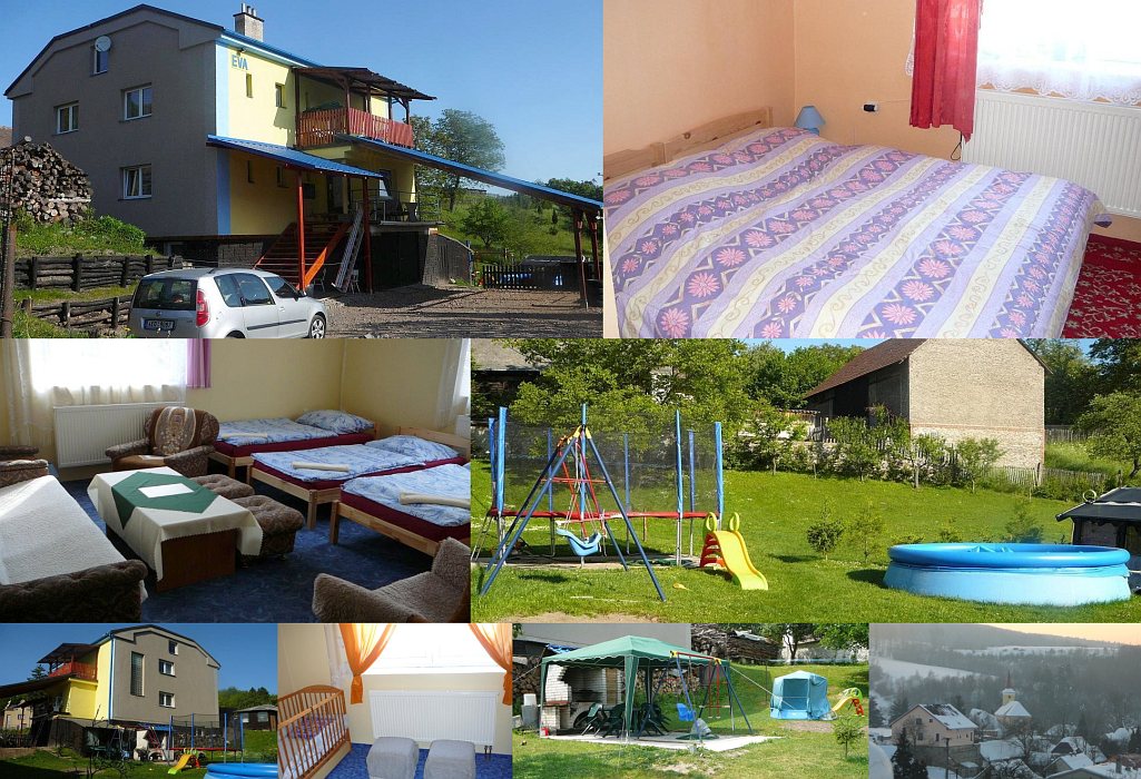 Ubytování: Ubytování v soukromí (penzion) v šesti pokojích se základním vybavením (1x2, 2x3, 3x4 lůžka). Společné WC, koupelna a kuchyňka na obou patrech. Společenská místnost. Zahrada (grilování, pečení v krbu s udírnou, posezení s pískovištěm a houpačkou), pergola, sauna. Uzavřené parkoviště. Penzion je nekuřácký. V domě je wifi. Stravování možné po dohodě. Možnost zapůjčení dětské postýlky, DVD přehrávače, počítače, TV, videa. Možnost pořádání firemních akcí i sportovních soustředění.