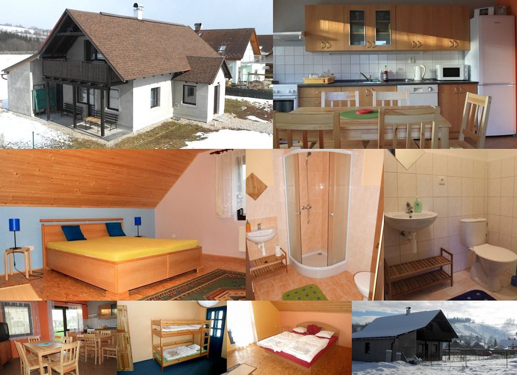 Ubytování: Rodinný dům (chalupa) s kapacitou 16 lůžek ve 4 ložnicích (4x4 lůžka). Dvě ložnice mají vlastní soc. zázemí, dvě ložnice (1. NP) mají společné soc. zařízení v přízemí. Dalších 10 osob může spát s vlastní karimatkou a spacákem na zemi. Ubytování je s vlastním vařením, v objektu je zařízená kuchyň, TV, topení ústřední. U penzionu je zahrada s ohništěm. Možný pronájem jednotlivých pokojů i celé chalupy.