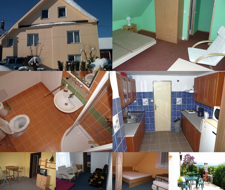 Ubytování: Apartmánový dům s kapacitou 25 osob. Ubytování v apartmánech (s vlastní koupelnou a kuchyňkou) a pokojích (s vlastní koupelnou). V přízemí domu je společná kuchyně a velká společenská místnost (bar, TV, kamna, sušáky na lyžařskou výbavu). Bezplatný WiFi internet. Zahrada s terasou a grilem.