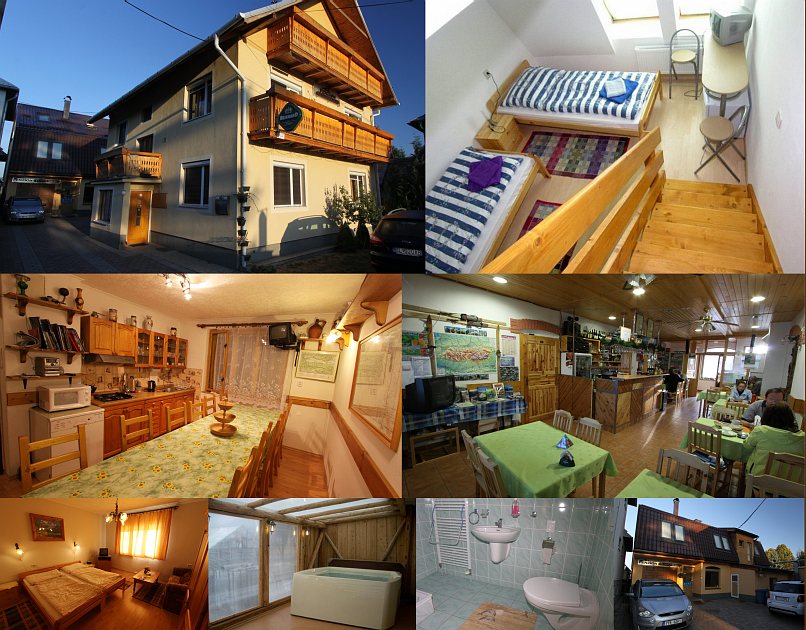 Ubytování: Penzion s 16 izbami a 5 apartmánmi v dvoch budovách. Izby aj apartmány sú 2-lôžkové a majú vlastné soc. zariadenie, TV a chladničku. Dve spoločné kuchyne a jedálne. Spoločenské hry, knihy, elektronické šípky, stolný futbal. V penzionu je vlastná reštaurácia (34 miest, možnosť aj plnej penzie), letná terasa (36 miest), salónik (12 miest), bar, záhradný grill s posedením. Parkovanie pre 12 áut pri penzione. V penzione je jacuzzi (6 osôb), fínská sauna a mini fitness. Ponúkame odvoz na Podbanské, Tri Studničky, Štrbské Pleso a iné východiská túr.