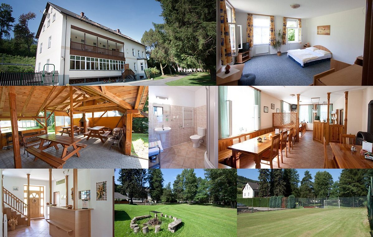 Ubytování: Nekuřácký penzion se 4 pokoji (1- až 3-lůžkovými). Každý pokoj má předsíň, koupelnu (sprcha, WC, umyvadlo, zrcadlo), pokoj (pracovní stůl, noční stolek, komoda, lůžka). Na pokojích je TV+SAT, sejf, minilednice s nealko nápoji, telefon, digitální budík. Z pokojů je vstup na krytou terasu. V penzionu je Wi-Fi. Venku je lesopark (6.500 m2), antukový tenisový kurt, minigolf, ruské kuželky, stolní tenis, dětský hrad, ohniště, uzamykatelné parkoviště. V penzionu je nekuřácká restaurace (možnost polopenze). Penzion je vhodný pro pořádání společenských a firemních akcí.