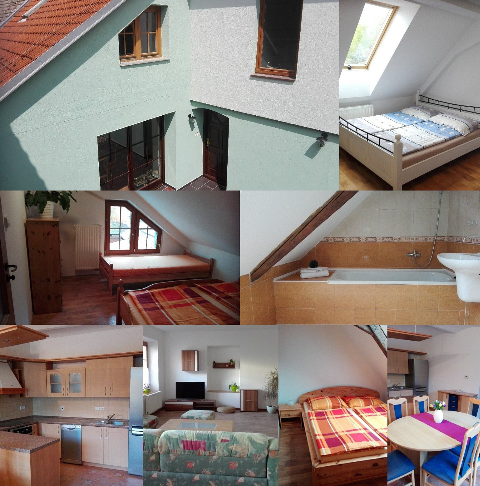 Ubytování: Pronájem části rodinného domu, vhodné pro skupiny až 10 osob, s celoročním provozem. V domě jsou 3 pokoje (2x3, 1x4 lůžka), plně vybavená kuchyně s jídelním koutem, společenská místnost s TV a WiFi internetem. V přízemí je samostatná koupelna se sprchovým koutem, v patře je samostatné wc a další koupelna s vanou a WC dohromady. Terasa s grilem. Úschovna kol ve dvoře.