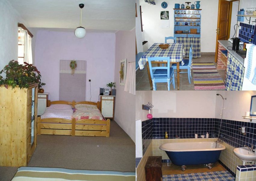 Ubytování: Část chalupy se samostatným vstupem, s kapacitou 5 lůžek. Obývací pokoj (3 lůžka, TV, hry), ložnice (4 lůžka + dětská postýlka), kuchyň (vařič, mikrovlnka, varná konvice, chladnička), koupelna (vana) + WC. Chalupa je po nedávné rekonstrukci. Vytápění tuhými palivy. Parkování vedle chalupy. Hosté se mohou na přání seznámit s prací v zemědělství. Ubytování je možné pouze přes léto (měsíce 05-09).