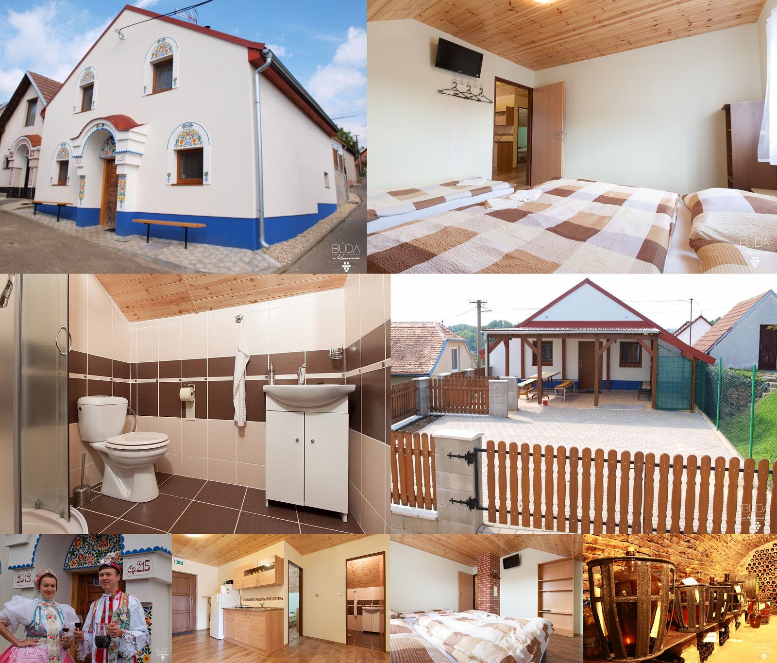 Ubytování: Stylový penzion s kapacitou 10 osob ve 4 pokojích (2x2, 2x3 lůžka). V domě je společná kuchyňka (s lednicí) a dvě koupelny (se sprchami). Na každém pokoji je TV s multimediálním systémem. Za domem je terasa se zastřešenou pergolou a posezením. Přímo na sklepě je možné parkování 3 aut. Búda stojí na základech původního vinného sklepa, který byl zbudovaný kolem roku 1930.