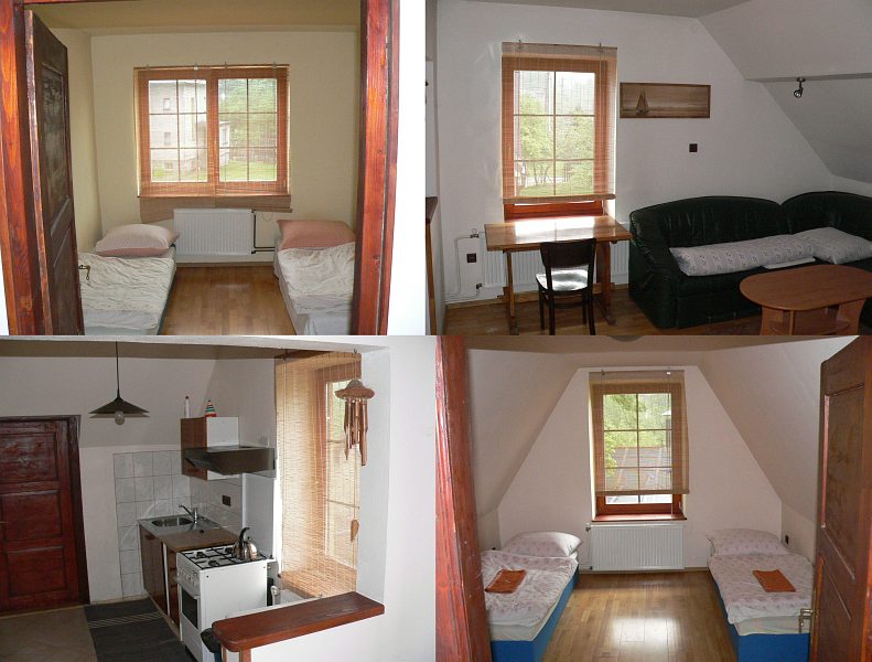 Ubytování: Příjemně zařízený podkrovní byt pro 4-6 osob nad Hostincem u Turka se samostatným vchodem. V bytě jsou 2 ložnice, kuchyňka, obývací pokoj a koupelna s WC. Ubytování je možné jen mimo topnou sezónu!