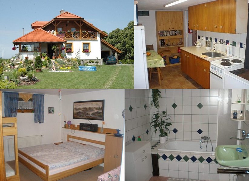 Ubytování: Apartmán max. pro 8 osob v suterénu rodinného domku, se samostatným vchodem. V horní části domu bydlí majitel. V apartmánu jsou dva 4-lůžkové pokoje, dětská postýlka, sociální zařízení, plně vybavená kuchyň s jídelním koutem, TV, DVD, WiFi. K dispozici je oddělený úsek zahrady s posezením a možností pro grilování (grilovací kámen). Dětský koutek vybavený houpačkou a skluzavkou. Za domem je malé fotbalové hřiště. Vlastní parkoviště.