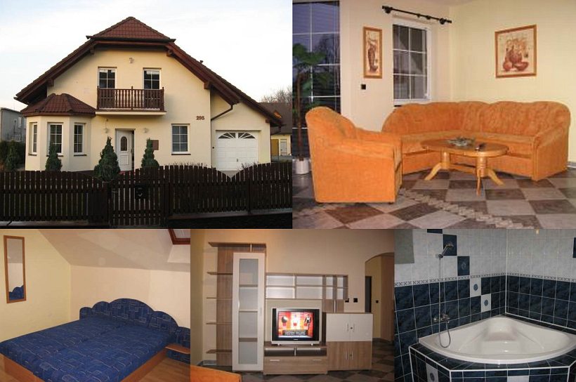 Ubytování: Domček pre 10 osôb (izby 2x2, 2x3 s možnosťou prístelky), vhodný najmä pre rodiny s detmi. Kompletne vybavená kuchynka (chladnička, kávovar, mikrovlnka, el. sporák). Parkovanie v garáži aj v uzamknutom objekte. Spoločenská miestnosť s TV a DVD, rozťahovacia rohová sedacia súprava, východ na terasu. 2x WC a kúpelňa so sprchovacím kútom a umývadlom.